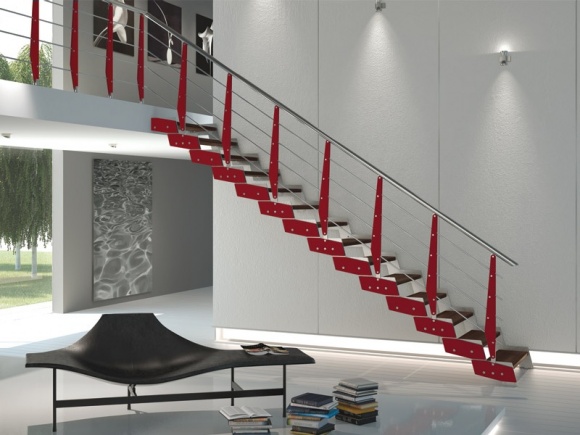 La amplia elección de los acabados y la gran posibilidad de configuraciones y anchuras convierten a la escalera línea en un nuevo estándar en el amueblado de interiores.